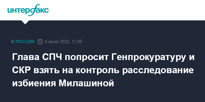 Глава СПЧ попросит Генпрокуратуру и СКР взять на контроль расследование избиения Милашиной