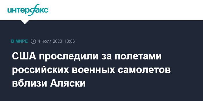 По его данным, полеты российских самолетов вблизи Аляски были совершены накануне. О типе самолетов не сообщается. При этом указывается, что "российские самолеты действовали в международном воздушном пространстве и не заходили в суверенное воздушное пространство США или Канады".