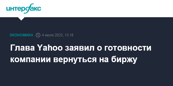 Москва. 4 июля. INTERFAX.RU - Интернет-компания Yahoo готова к возвращению на биржу через размещение акций, заявил Financial Times глава компании Джим Ланзон.