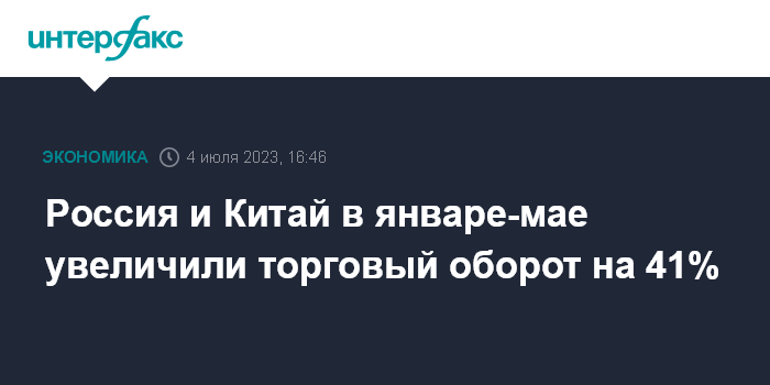Россия и Китай в январе-мае увеличили торговый оборот на 41%
