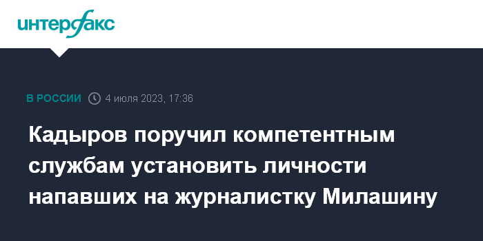 Москва. 4 июля. INTERFAX.RU - Глава Чечни Рамзан Кадыров сообщил, что поручил компетентным службам установить личности причастных к нападению на журналистку Елену Милашину и адвоката Александра Немова.