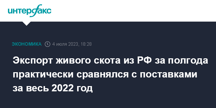 Экспорт живого скота из РФ за полгода практически сравнялся с поставками за весь 2022 год