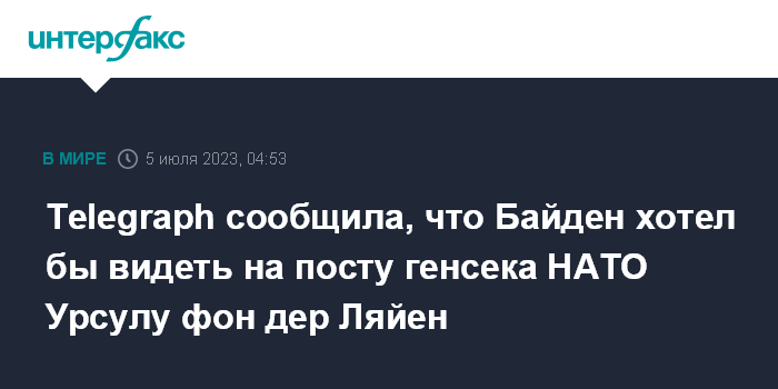 Telegraph сообщила, что Байден хотел бы видеть на посту генсека НАТО Урсулу фон дер Ляйен