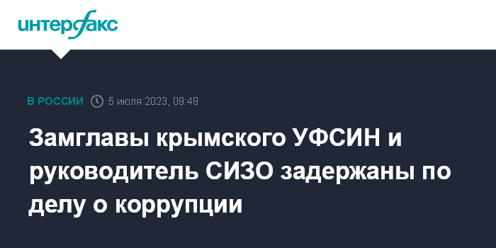 Замглавы крымского УФСИН и руководитель СИЗО задержаны по делу о коррупции