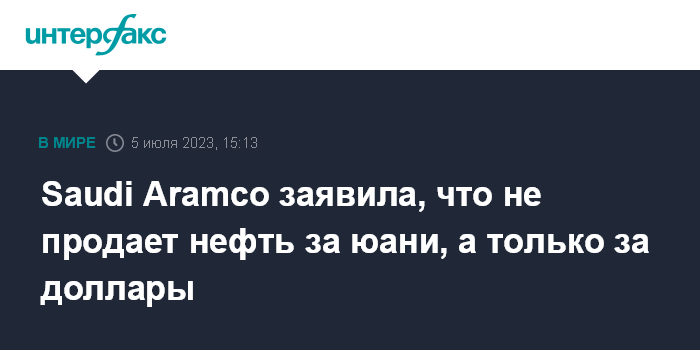 Saudi Aramco заявила, что не продает нефть за юани, а только за доллары