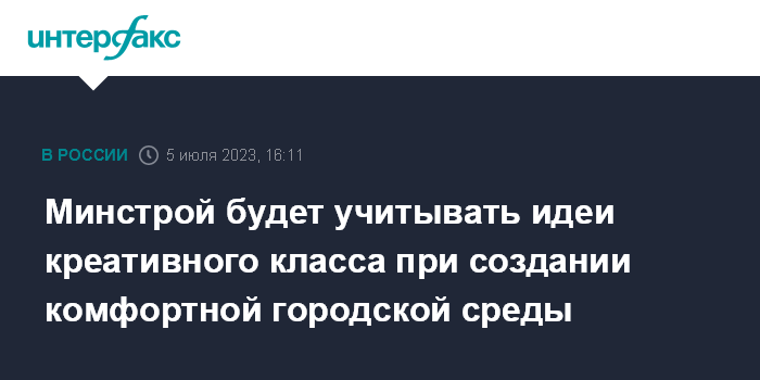 Минстрой будет учитывать идеи креативного класса при создании комфортной городской среды