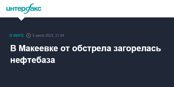 Москва. 5 июля. INTERFAX.RU - В ДНР в Макеевке в результате обстрела загорелась нефтебаза, сообщил через пресс-службу глава администрации города Владислав Ключаров.