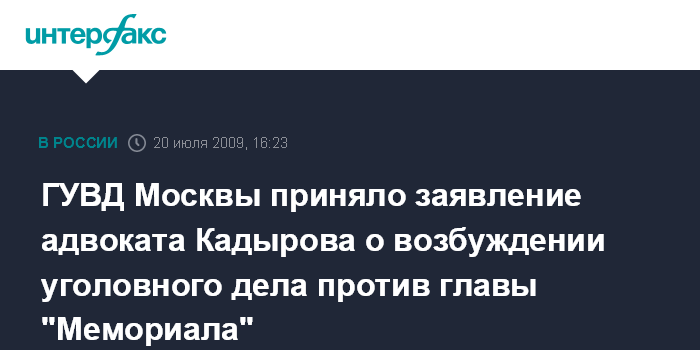 ГУВД Москвы приняло заявление адвоката Кадырова о возбуждении уголовного дела против главы "Мемориала"