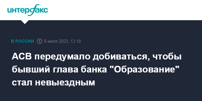 АСВ передумало добиваться, чтобы бывший глава банка "Образование" стал невыездным