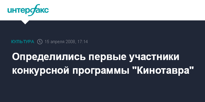 Москва. 15 апреля. INTERFAX.RU - Отборочная комиссия XIX Открытого российского кинофестиваля "Кинотавр" назвала первые шесть фильмов, которые войдут в конкурсную программу этого года.