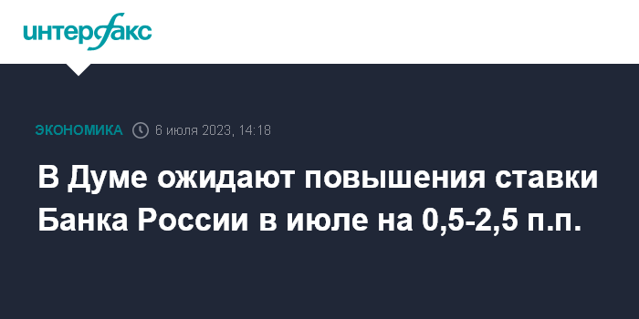 В Думе ожидают повышения ставки Банка России в июле на 0,5-2,5 п.п.