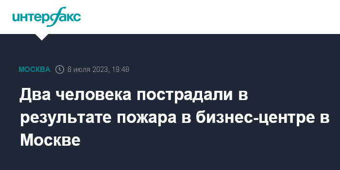 Два человека пострадали в результате пожара в бизнес-центре в Москве