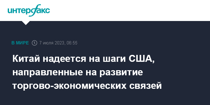 Китай надеется на шаги США, направленные на развитие торгово-экономических связей