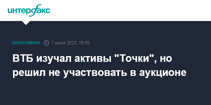 ВТБ изучал активы "Точки", но решил не участвовать в аукционе