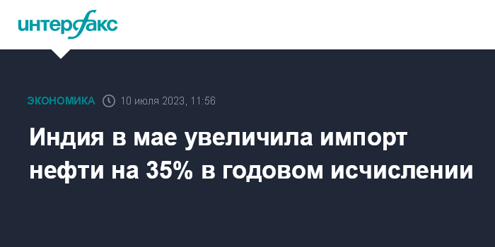 Индия в мае увеличила импорт нефти на 35% в годовом исчислении