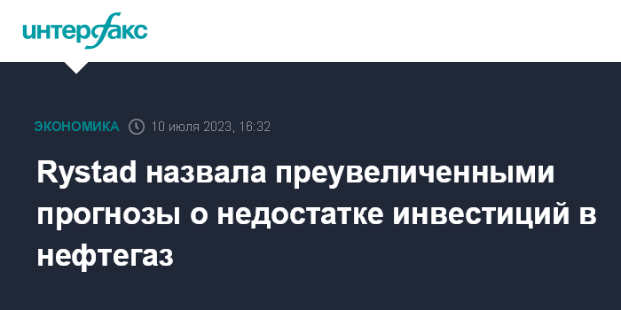 Москва. 10 июля. INTERFAX.RU - Постоянные заявления о хроническом недофинансировании мировой нефтегазовой отрасли преувеличены, говорится в исследовании Rystad Energy.