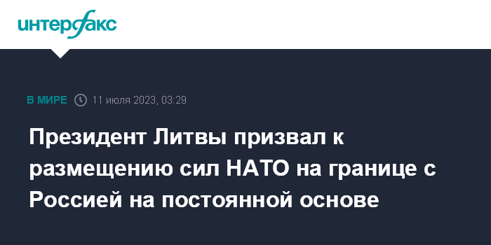 Москва. 11 июля. INTERFAX.RU - В настоящей ситуации НАТО следует отказаться от соблюдения условий основополагающего акта Россия-НАТО и разместить силы альянса на границе с Россией на постоянной основе, заявил в интервью британской газете The Times президент Литвы Гитанас Науседа.