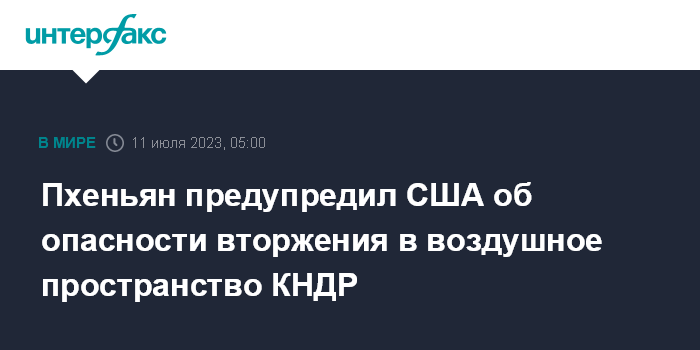 Пхеньян предупредил США об опасности вторжения в воздушное пространство КНДР