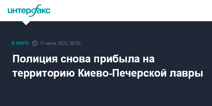 Москва. 11 июля. INTERFAX.RU - С раннего утра вторника полиция прибыла на территорию Киево-Печерской лавры, где, как ожидается, сегодня продолжится изъятие корпусов у Украинской православной церкви (УПЦ).