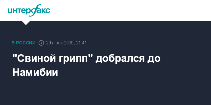 Москва. 20 июля. INTERFAX.RU - Власти Намибии объявили в понедельник о выявлении первых в стране подтвержденных случаев заболевания гриппом A/H1N1.