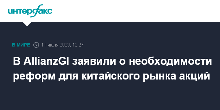 В AllianzGI заявили о необходимости реформ для китайского рынка акций