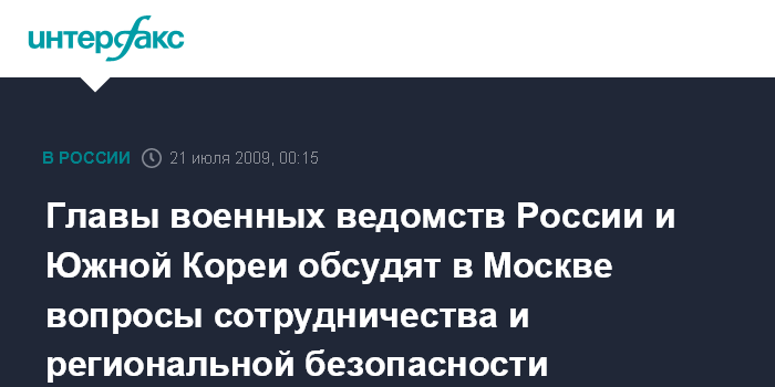 Главы военных ведомств России и Южной Кореи обсудят в Москве вопросы сотрудничества и региональной безопасности