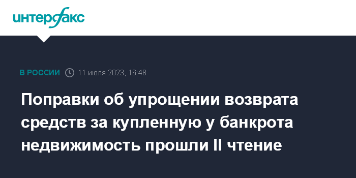 Поправки об упрощении возврата средств за купленную у банкрота недвижимость прошли II чтение