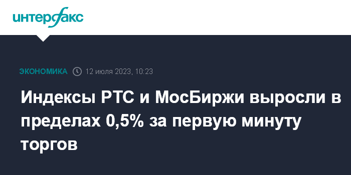 Индексы РТС и МосБиржи выросли в пределах 0,5% за первую минуту торгов