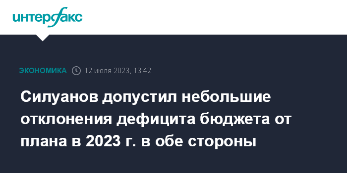 Москва. 12 июля. INTERFAX.RU - Небольшие отклонения дефицита федерального бюджета от планового уровня в 2% ВВП по итогам 2023 возможны в обе стороны, полагает министр финансов РФ Антон Силуанов.