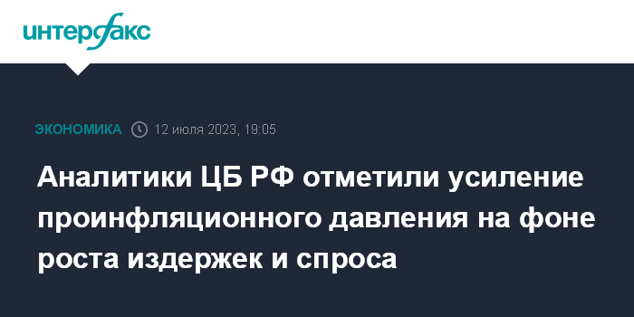 Аналитики ЦБ РФ отметили усиление проинфляционного давления на фоне роста издержек и спроса