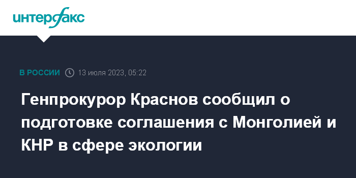 Генпрокурор Краснов сообщил о подготовке соглашения с Монголией и КНР в сфере экологии