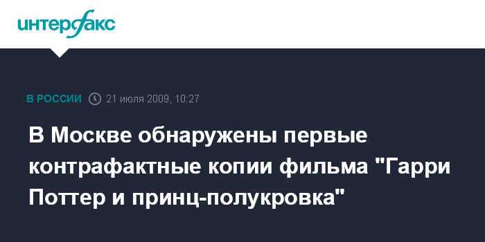 Москва. 21 июля. INTERFAX.RU - В Москве в ходе широкомасштабной милицейской операции под кодовым названием "Гарри" оперативники УБЭП ГУВД столицы обнаружили и изъяли из торговли первые контрафактные копии фильма "Гарри Поттер и принц-полукровка".
