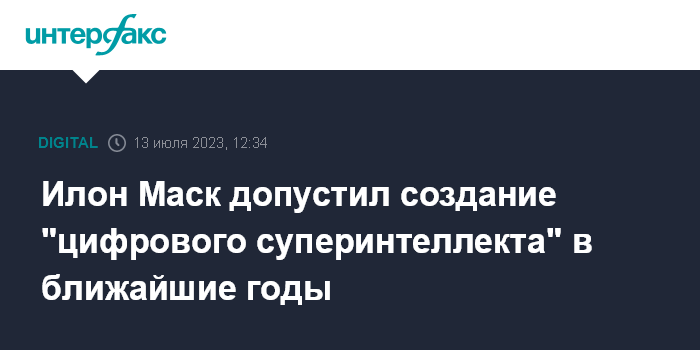 Москва. 13 июля. INTERFAX.RU - Владелец Twitter и глава SpaceX и Tesla Илон Маск считает, что в ближайшие пять-шесть лет возможно создание цифрового суперинтеллекта, который превзойдет человеческий, сообщает The Hill.