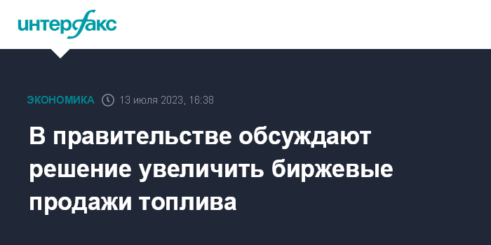 В правительстве обсуждают решение увеличить биржевые продажи топлива
