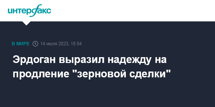 Эрдоган выразил надежду на продление "зерновой сделки"