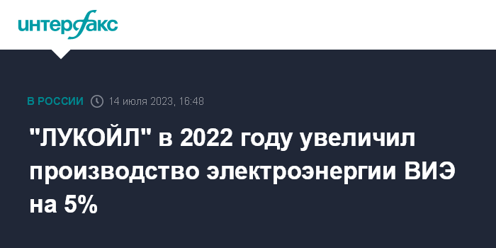 "ЛУКОЙЛ" в 2022 году увеличил производство электроэнергии ВИЭ на 5%