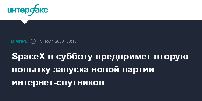 SpaceX в субботу предпримет вторую попытку запуска новой партии интернет-спутников