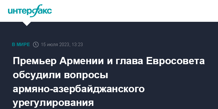 Москва. 15 июля. INTERFAX.RU - Премьер Армении Никол Пашинян обсудил в Брюсселе с главой Евросовета Шарлем Мишелем вопросы предстоящей в субботу встречи с президентом Азербайджана Ильхамом Алиевым.