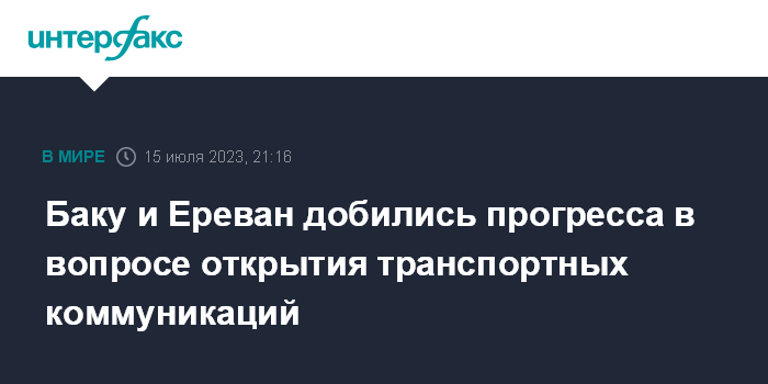 Москва. 15 июля. INTERFAX.RU - Глава Евросовета Шарль Мишель заявил, что президент Азербайджана Ильхам Алиев и премьер-министр Армении Никол Пашинян добились позитивного результата в обсуждении проблемы транспортных связей региона.