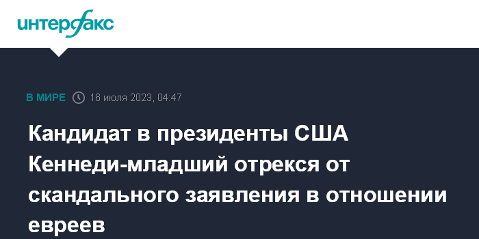 Кандидат в президенты США Кеннеди-младший отрекcя от скандального заявления в отношении евреев