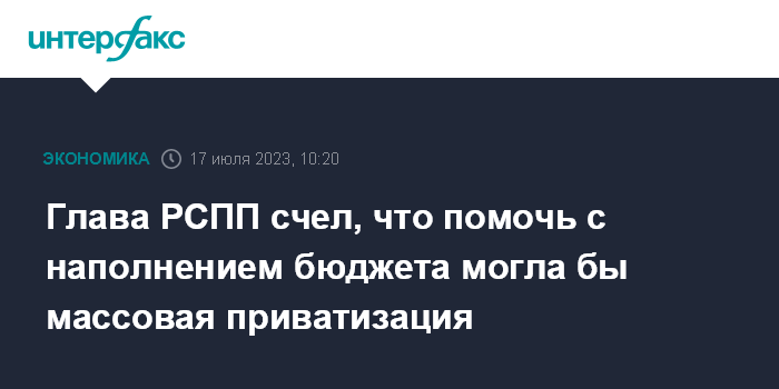 Глава РСПП счел, что помочь с наполнением бюджета могла бы массовая приватизация