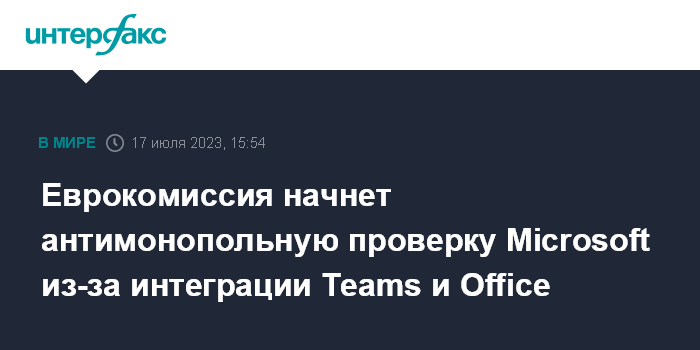Москва. 17 июля. INTERFAX.RU - Европейская комиссия на следующей неделе планирует начать углубленную проверку в отношении Microsoft Corp. в связи с жалобами на нарушение правил конкуренции за счет привязки приложения Teams к программам Office.