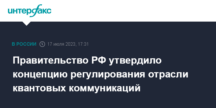 Правительство РФ утвердило концепцию регулирования отрасли квантовых коммуникаций
