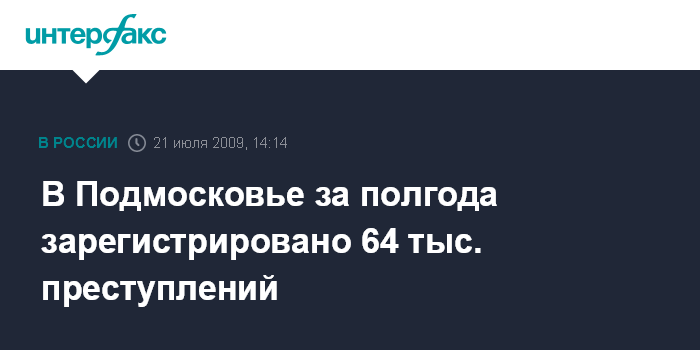 Москва. 21 июля. INTERFAX.RU - За первое полугодие 2009 г. сотрудниками милиции зарегистрировано в Московской области свыше 64 тысяч преступлений, сообщил во вторник пресс-конференции заместитель начальника ГУВД по Московской области генерал-майор милиции Андрей Липилин.