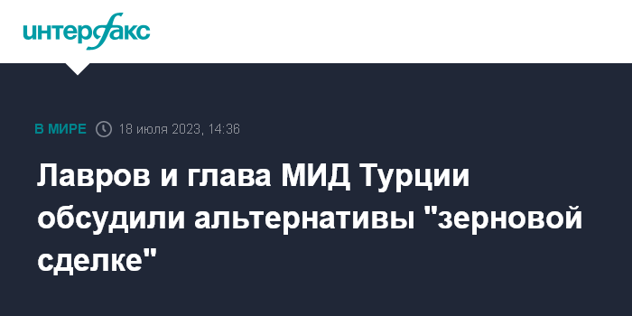 Лавров и глава МИД Турции обсудили альтернативы "зерновой сделке"