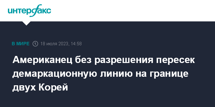 Москва. 18 июля. INTERFAX.RU - Северокорейские пограничники задержали гражданина США, который во время туристической экскурсии незаконно перешел из Южной Кореи на территорию КНДР в районе демилитаризованной зоны в Пханмунджоме.