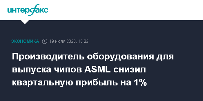 Москва. 19 июля. INTERFAX.RU - Нидерландский производитель оборудования для выпуска чипов ASML Holding NV во втором квартале сократил чистую прибыль на 1%, но улучшил прогноз роста выручки по итогам 2023 года.