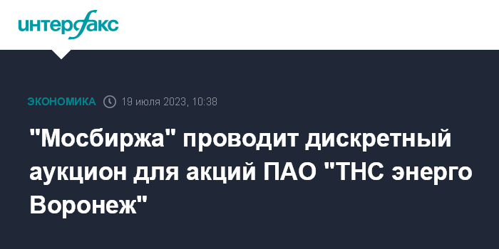"Мосбиржа" проводит дискретный аукцион для акций ПАО "ТНС энерго Воронеж"