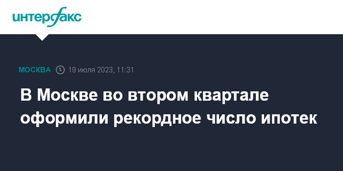 Москва. 19 июля. INTERFAX.RU - В Москве во втором квартале 2023 года заключили рекордное число ипотечных сделок на покупку на первичном и вторичном рынках жилья, сообщили в пресс-службе столичного управления Росреестра.