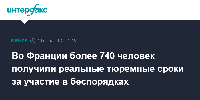 Во Франции более 740 человек получили реальные тюремные сроки за участие в беспорядках
